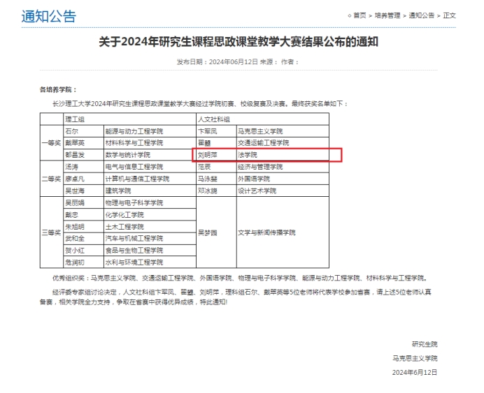 为全面推进研究生课程思政建设,更好服务“三高四新”战略任务。学校决定举办第二届MG冰球突破官网研究生课程思政课堂教学大赛暨第二届湖南省研究生课程思政课堂教学大赛校内选拔赛。我院积极组织教师参加2024年MG冰球突破官网课程思政教学竞赛。