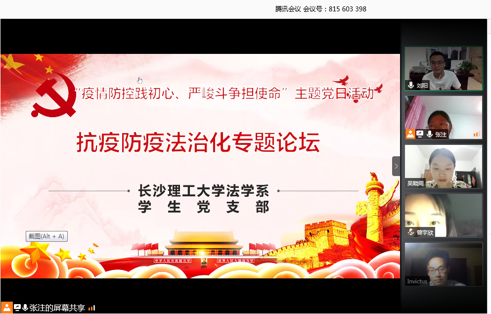 其实,在疫情发生初期,法学系便以“依法抗疫·我献良策”为主题策划了征文活动,鼓励全体教师指导研究生、本科生,就疫情期间经济社会生活方面发生的时事热点事件展开法律分析,撰文研讨疫情下的劳动关系、市场监管、公司治理、违法犯罪行为等社会聚焦的法律问题。同时,法学系团总支组织开展了“携手抗疫·普法同行”防疫志愿者普法活动。第一时间引导广大师生依法行动、依法行事,更好地强信心、暖人心、聚民心。