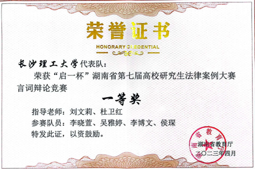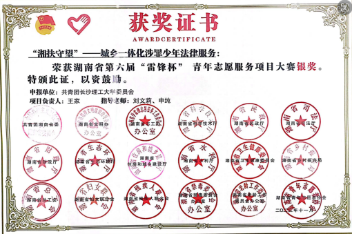 为了将所学理论知识与实践相结合,帮助学生提高逻辑思维和辩论能力,为学生将来从事法律实务工作奠定基础,她多次指导学生参加模拟法庭大赛、案例大赛等高校省级比赛,多次斩获竞赛一等奖。同时,指导学生参加湖南省首届、第四届、第七届青年志愿服务大赛,均获得银奖。