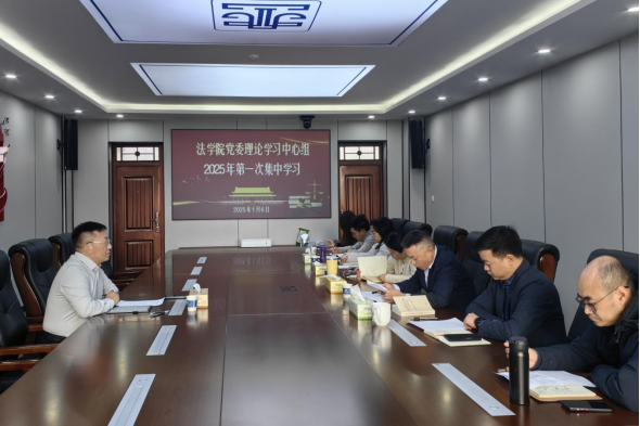 1月6日上午,法学院党委理论学习中心组在金盆岭校区四号教学楼307会议室进行2025年第一次集中学习,学院全体班子成员参加,院党委书记龚文斌主持会议。校党委委员、副校长张军辉巡听会议并讲话。