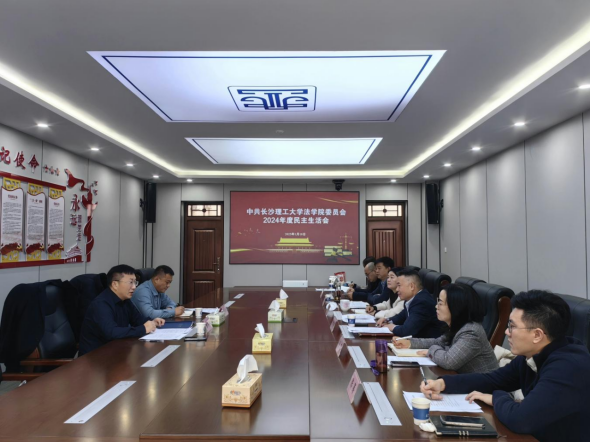 1月18日上午,法学院党委在金盆岭校区四号教学楼307会议室召开2024年度民主生活会,校党委委员、副校长张军辉,组织部副部长乔法光到会指导,院党委书记龚文斌主持会议,学院全体领导班子参加会议。