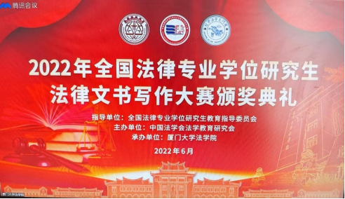 6月12日上午,2022年全国法律专业学位研究生法律文书写作大赛圆满落幕,我院2020级法律硕士(法学)房佳琪荣获2022年全国法律专业学位研究生法律文书写作大赛三等奖。