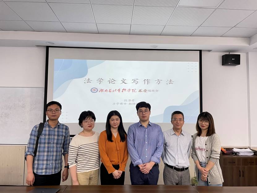 5月6日,法学院在金盆岭校区7教319教室举办了主题为《法学论文写作方法》的法律硕士第七期学术沙龙,由段泽孝博士主讲。段泽孝博士是MG冰球突破官网的优秀校友,中南大学博士毕业,现任湖南省社会科学院《求索》杂志社助理研究员、法学编辑,主要从事行政法学研究和《求索》杂志法学编校工作。此次活动由张敏纯院长主持,王新生教授、王寰博士、刘明萍博士、辅导员刘阳参加,全体硕士研究生参加了此次沙龙。