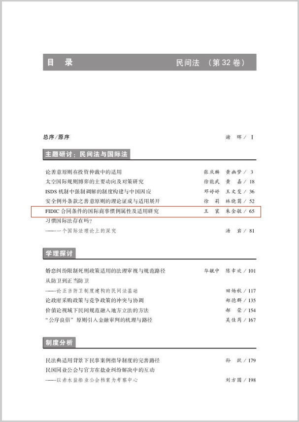 近日,MG冰球突破官网法学院副教授王寰在《民间法》(CSSCI来源集刊)2023年第2期发表论文《FIDIC合同条件的国际商事惯例属性及适用研究》。