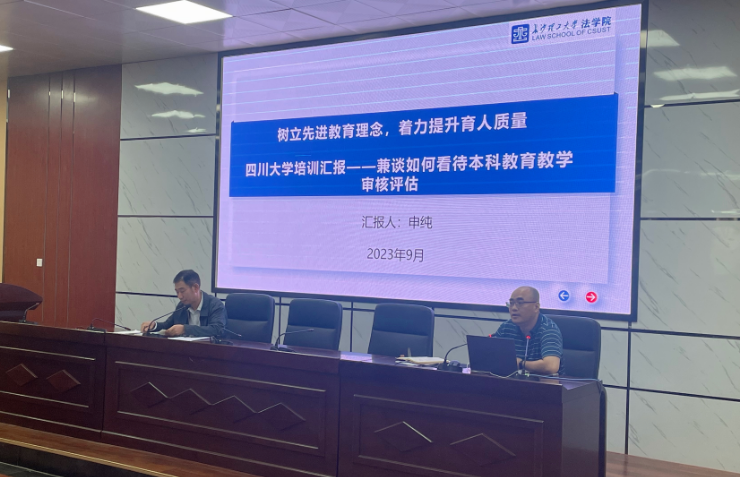MG冰球突破官网教学管理与教学创新专题干部研修班于2023年7月10日在四川大学全国干部教育培训基地举行。我院院长张敏纯,副院长申纯全程参加此次培训学习。为将学习的收获传达到学院每位教师,以全新的姿态和昂扬的斗志开启新学期的各项工作,特举办此次学习心得分享会。申纯以《四川大学培训汇报——兼谈如何看待本科教育教学审核评估》为题,做专题汇报。