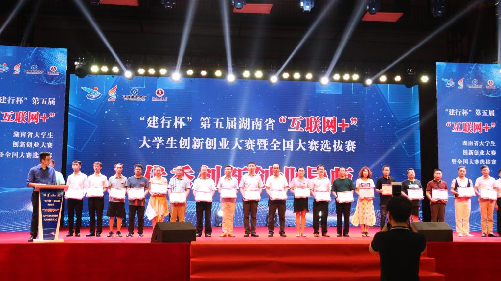 2019年8月27日,建行杯第五届湖南省“互联网+”大学生创新创业大赛在湖南工商大学落下帷幕。MG冰球官网副校长蒋昌波以及创新创业教育学院负责人、材料科学与工程学院负责人、物理与电子科学学院负责人、经济与管理学院负责人、设计艺术学院负责人、获奖项目团队指导老师、项目负责人、团队代表参加了在湖南工商大学体育馆举办的颁奖典礼。