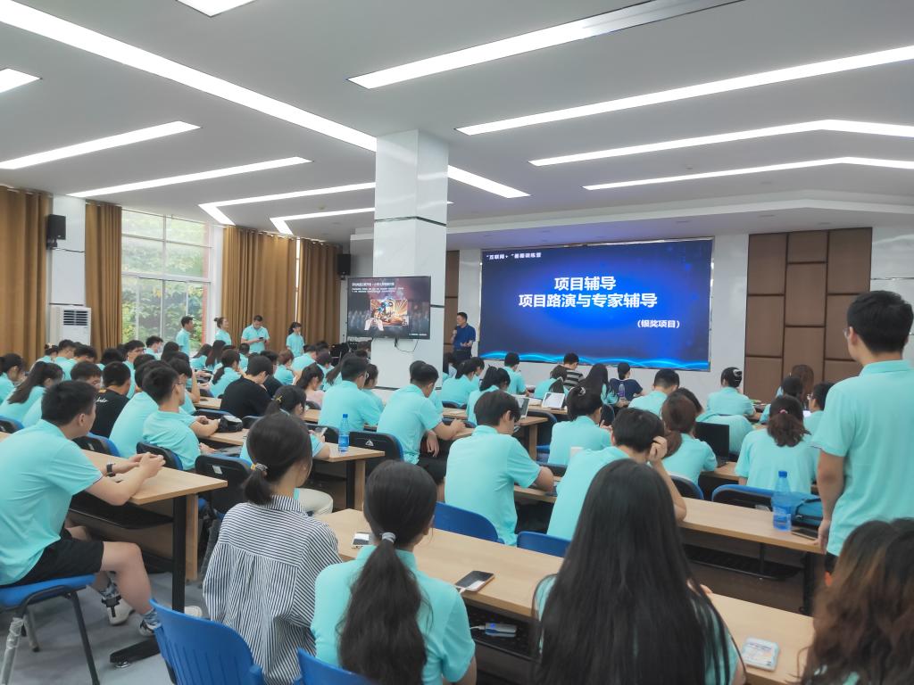 下午,训练营组织校赛银奖项目团队在创业园207报告厅进行路演和项目辅导。创新创业教育学院副院长杨建军、土木学院党委副书记黄阿明、电气学院党委副书记任艮丰、设计艺术学院党委副书记万馨,材料学院博士贺浩担任指导老师,就项目的核心竞争力、市场份额预测、团队介绍、参赛组别等方面对项目进行点评和指导。校赛金奖项目在科技报告厅进行观看第六届中国“互联网+”创新创业大赛总决赛冠军争夺赛视频。(文/何若云 图/符琳曼 审核/常晗)