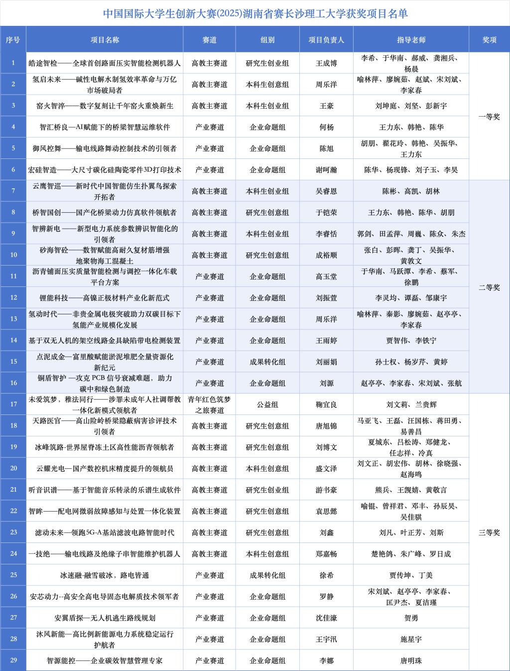 近日,中国国际大学生创新大赛(2025)湖南省赛在南华大学落下帷幕。MG冰球官网入围现场赛的15个项目分获一等奖3项、二等奖4项、三等奖8项,产业赛道项目分获一等奖3项、二等奖6项、三等奖5项。