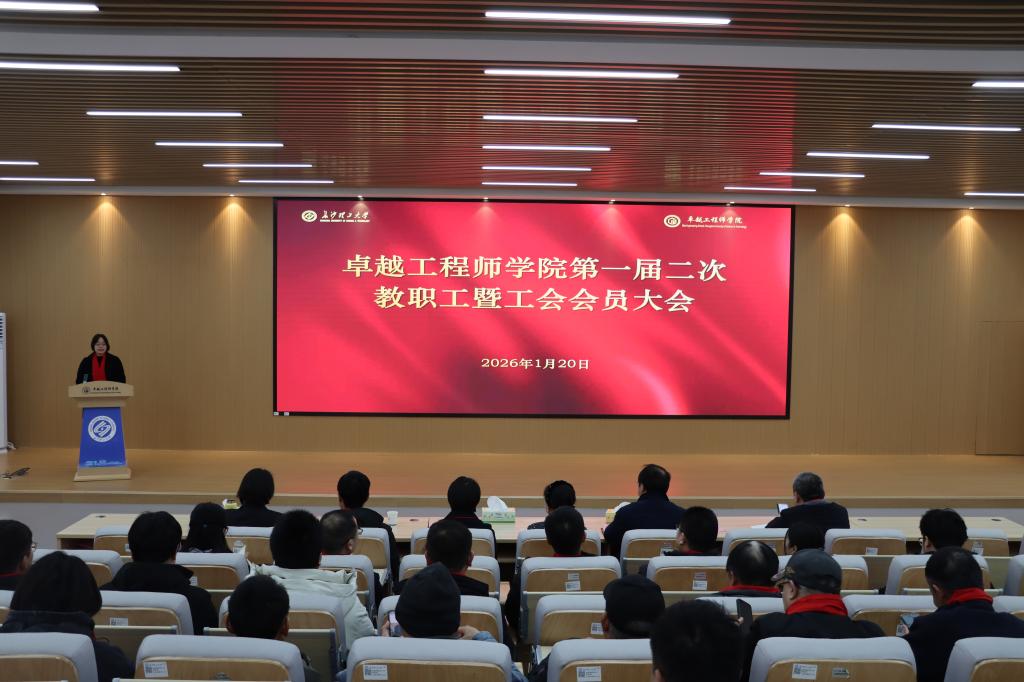 1月20日下午,学院在新工训大楼515报告厅召开学院第一届二次教职工暨工会会员大会。大会由学院分工会副主席谢琼主持。