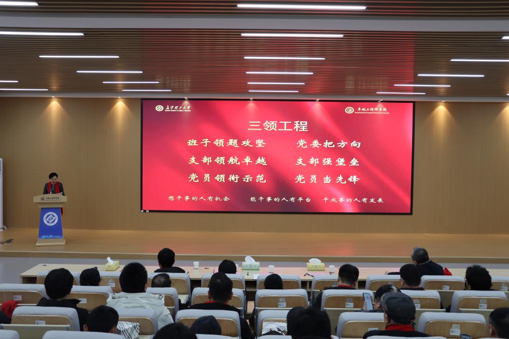 院党委书记杨晨在讲话中指出,过去一年,学院党委坚持以“三领工程”为总抓手,系统构建“班子领题攻坚、支部领航卓越、党员领衔示范”的工作格局,将党的政治优势、组织优势深度融入卓越工程师培养全过程,在育人模式改革、创新创业生态培育、安全稳定防线构筑等方面取得了扎实成效,实现了党建引领与事业发展的同频共振。杨晨强调,面向未来,学院党委将以“三领工程”为依托,营造风清气正、干事创业好环境,让想干事的人有机会、能干事的人有平台、干成事的人有发展,希望全体教职工同心同德、建言献策,共同把学院建设好、发展好。