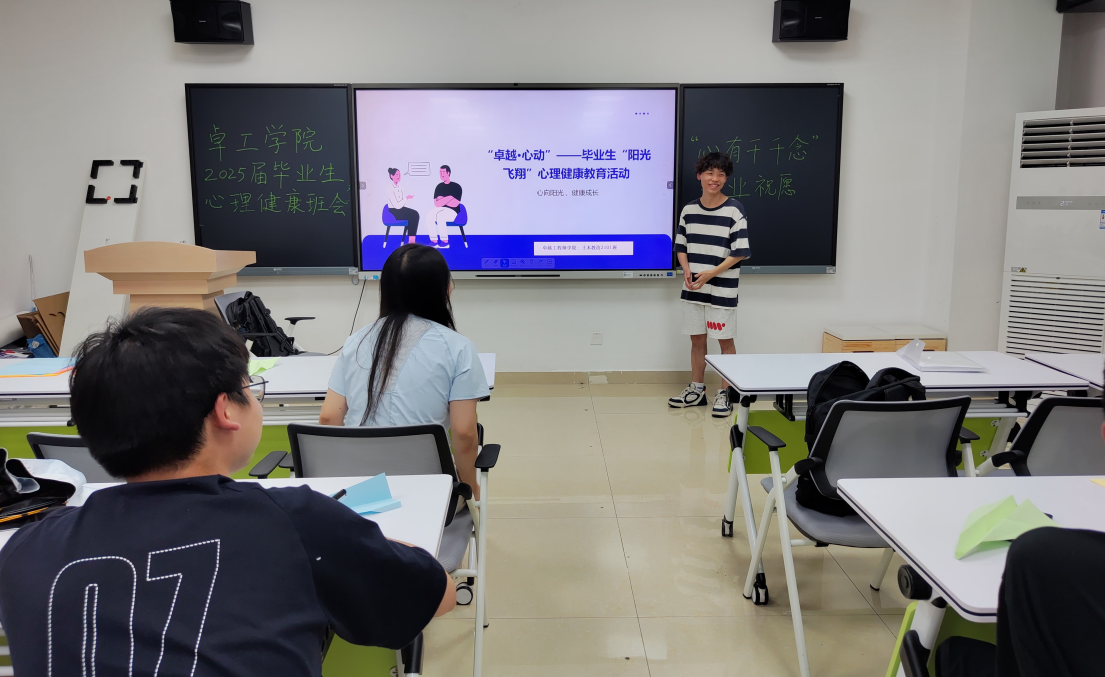 5月中旬,卓工学院在新能源大楼举行了毕业生“阳光飞翔”为主题的心理健康教育活动,各班召开了以“暖流相系,共愈同行”为主题的班会,并开展了“压力放飞”“时光隧道”“心愿花篮”等毕业季心理健康教育活动。