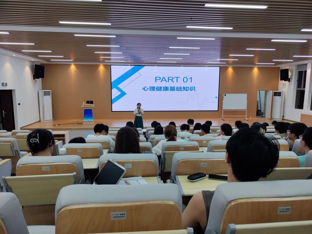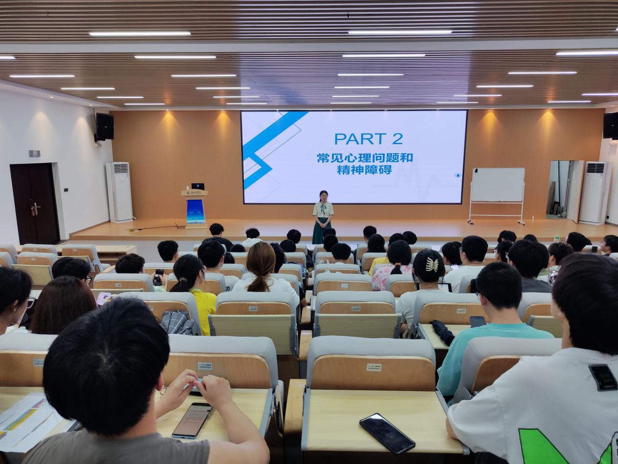 潘枝花首先普及了心理健康基础知识,然后通过一个视频短片,让同学们明白心理危机距离我们并不遥远。她解说了需要了解的几个基本的心理学概念,阐释了心理问题由产生到发展为严重心理/精神疾病的过程;普及了大学生常见心理问题类别和表现、应对处理方式以及心理危机中朋辈如何陪伴关注等知识,强调了需要重点关注的人群和需要提高警惕的时期,引导同学们以尊重生命、敬畏科学的态度,正确认识自己和身边同学出现的心理问题和可能发生的心理危机,及时介入和帮助。