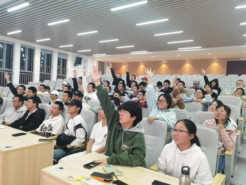 本次活动设置了多个趣味互动环节,包括“猜歌名”“Emoji猜猜乐”“看图猜台词”“看局部猜整体”和“看图猜电影”等。在场同学分为10个小组,现场气氛活跃,同学们在游戏中积极协作、踊跃参与,展现出良好的团队精神与青春活力。“猜歌名”环节旋律响起,同学们争相抢答,现场掌声笑声不断;“Emoji猜猜乐”中创意十足的符号组合更是引发阵阵欢笑,将整场气氛推向高潮。整场活动节奏紧凑、氛围轻松,新生们在互动中逐渐打破陌生,拉近了彼此的距离。