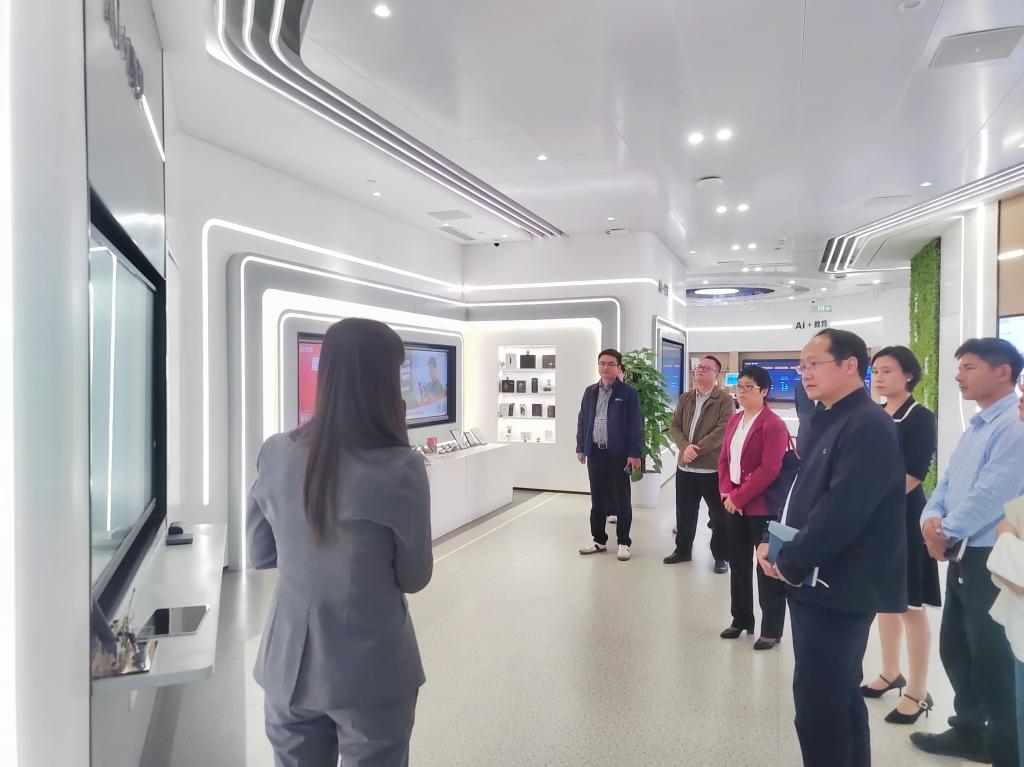 在科大讯飞中南总部展厅,韩艳一行深入了解公司的发展历程、核心技术、应用场景以及未来蓝图,体验公司在语音识别、机器翻译、自然语言处理和大模型等领域的最新技术成果。