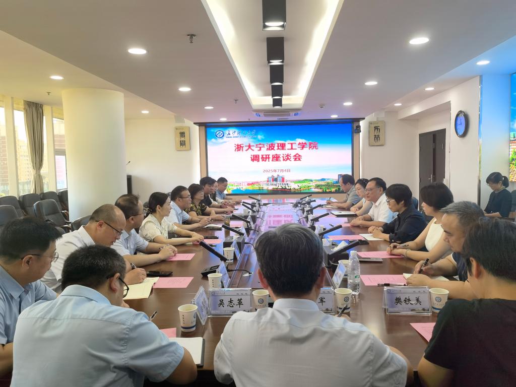 7月4日上午,浙大宁波理工学院党委委员、副校长张荣祥一行来校调研。校党委委员、副校长刘朝晖出席座谈会并讲话。
