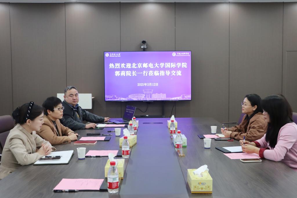 3月12日下午,北京邮电大学国际学院院长郭莉、副院长王菡来院交流。院长韩艳、党委书记杨晨、副院长吴钢参加会议。会议由韩艳主持。