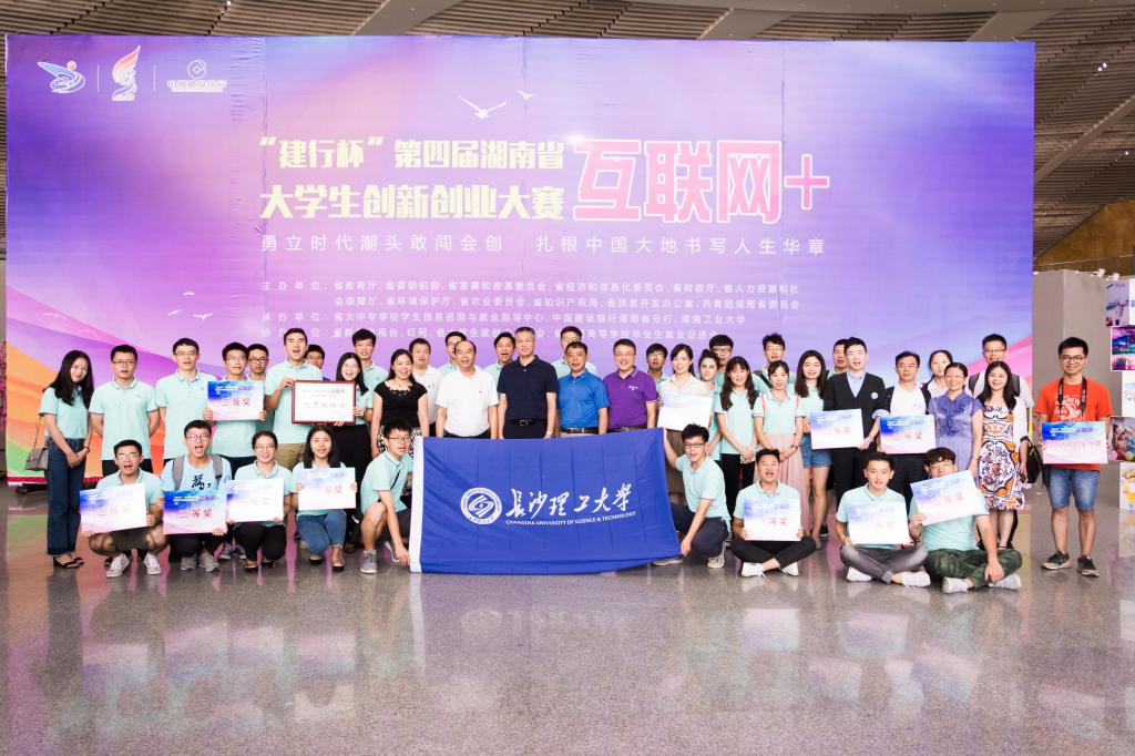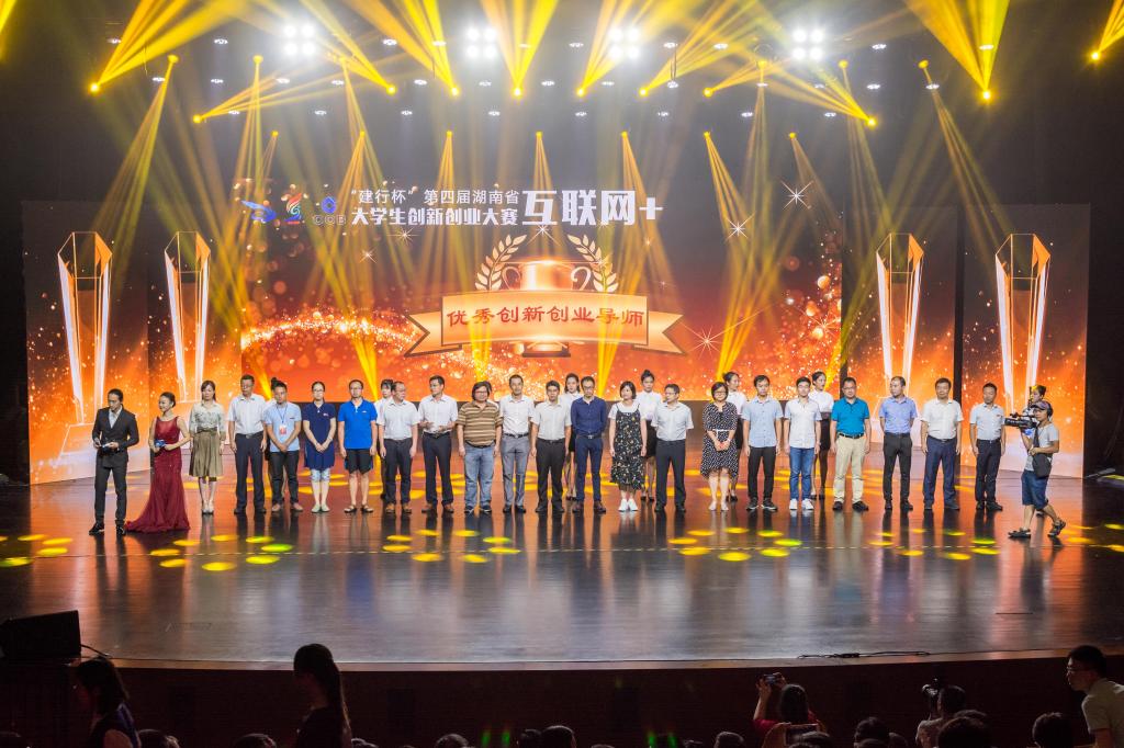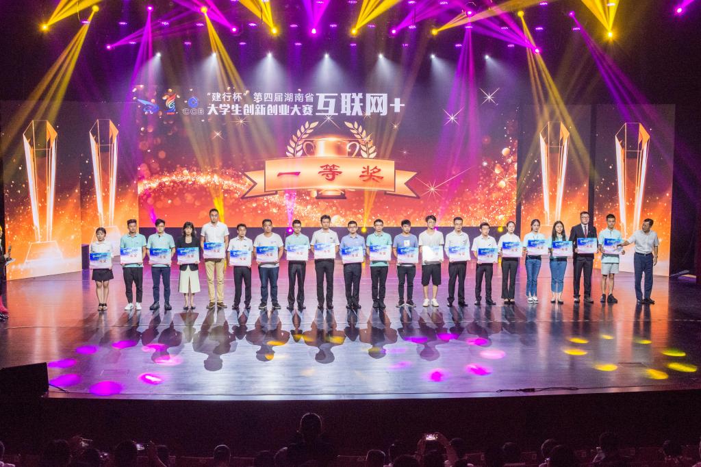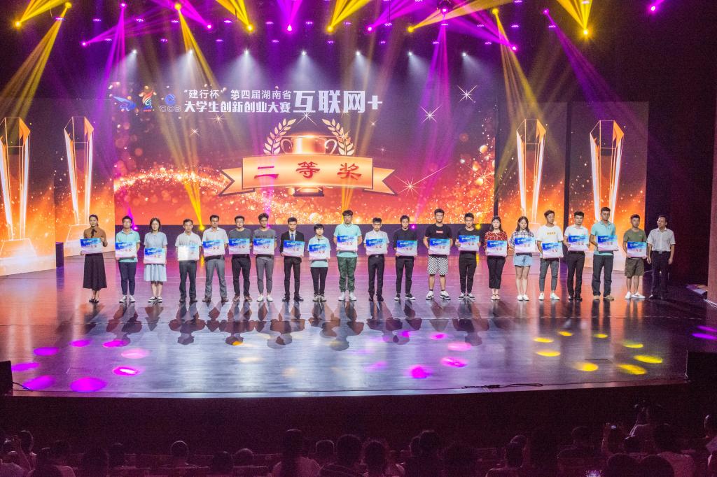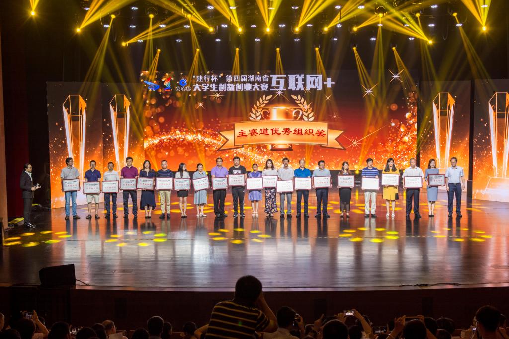 2018年8月31日, “建行杯”第四届湖南省“互联网+”大学生创新创业大赛在湖南工业大学落下帷幕。MG冰球官网副校长蒋昌波、以及创新创业教育学院负责人、项目团队指导教师、获奖团队代表等45人参加了在株洲神龙大剧院举行的颁奖典礼。