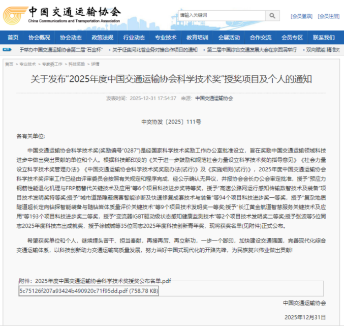 中国交通运输协会科学技术奖是由国家科学技术奖励工作办公室批准设立的省部级重要科技奖项,在交通运输行业具有重要影响力。本次获奖成果聚焦高速公路能源系统智能化升级,在链式微电网柔性协同与自主运行控制方面实现关键技术突破,为提升公路系统能效、保障设施稳定运行、推动交通绿色低碳转型提供有力支撑。