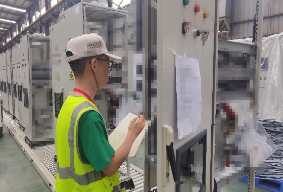 实践队员根据设计图纸仔细核查了自动启闭机,冲洗水加压泵等多个“抽屉柜”的元器件,并及时对型号标签以及组装情况做现场记录。检验过程中,实践队员对“抽屉柜”的结构及其检修方式,对专业知识有了更深入的理解。随后,师傅带领实践队员参观了低压及高压电箱的生产车间。期间,实践队员认识了基本元器件及其符号。