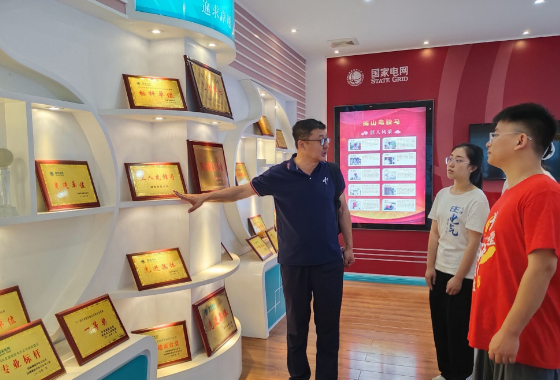 7月20日,MG冰球突破官网赴国网新化县供电公司实践队在赵斌教授和国网新化县供电公司农服公司负责人陈文国的带领下前往国网新化县供电公司电力大楼708“梅山电保姆”劳模创新工作室进行学习参观。