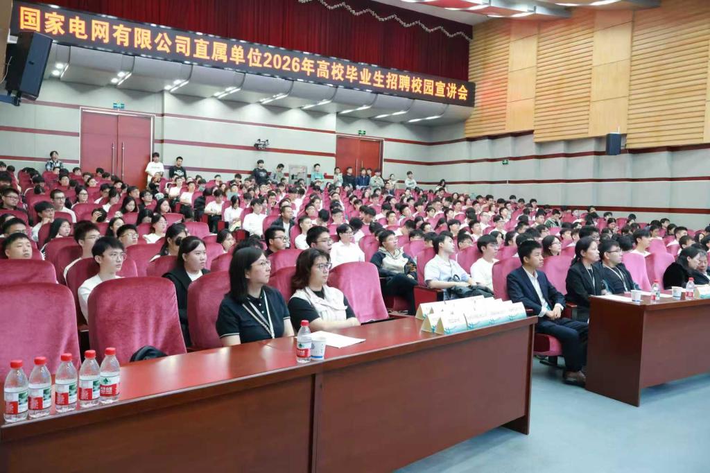 9月22日上午,国家电网有限公司直属单位2026年高校毕业生招聘校园宣讲会在MG冰球官网云塘校区图书馆报告厅举行。国网人才交流中心顾问赵培胜,学校就业创业处处长田上,电气学院党委书记丁丹、党委副书记周巍,国际工学院党委副书记黄黎明共同出席招聘宣讲会。