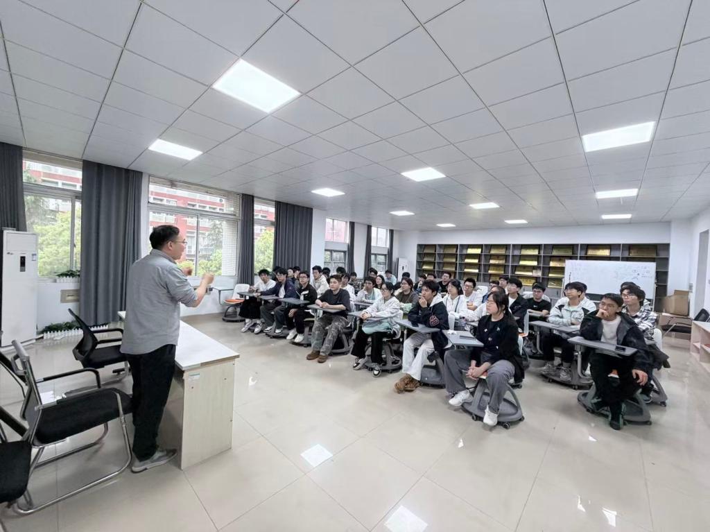 会议伊始,辅导员朱杰与同学们分享学习心得。无论选择考研或就业,扎实的学业基础和丰富的竞赛经历都至关重要。他希望同学们珍惜“电创班”这一平台优势,积极利用学院提供的优质导师资源,并注重在课堂内外展现班级积极向上的整体风貌,共同维护班级集体荣誉。