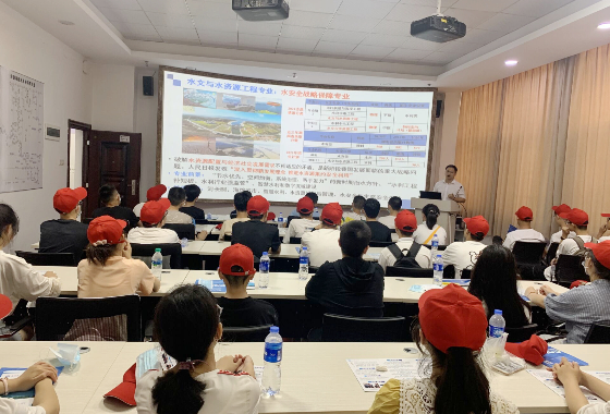 在洞庭湖保护与综合治理研究中心,同学们参观了洞庭湖水环境治理与生态修复湖南省重点实验室,水利学院院长陈杰、副院长邓斌为同学们介绍了学校的历史沿革、专业划分,同时为同学们讲解了实验室的发展历程、组织构架、主要研究成果。