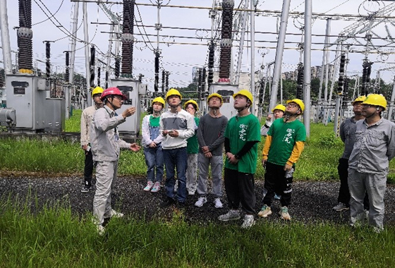 首先,三位班长带领实践队员参观班组日常工作的报告、数据的电子档、纸质档管理室、学习先进检测仪器红外测温仪等工具的使用和存放方法、使队员们了解电气试验班的日常任务等活动。紧接着,他们带领队员抵达变电站,向队员强调安全问题要贯彻始终。随后,他们向队员逐项介绍电网回路。期间他们运用风趣的语言将生活实际和有关知识结合,简单通俗地向同学们介绍变电站如何工作和如何运维。同时,周腊吾进行补充讲解,这让相关专业的同学醍醐灌顶,经济管理专业的队员也对变电站有了进一步了解。实践结束,回程路上的骄阳似火,似电气青年的心,充满活力。