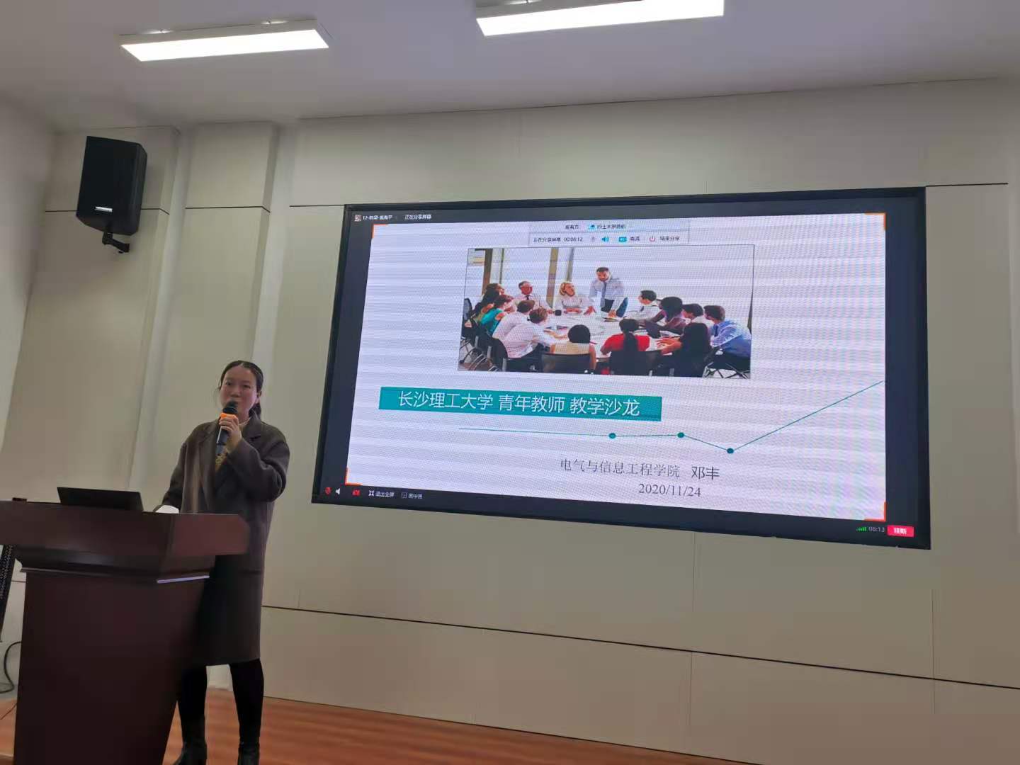 省课堂教学竞赛一等奖获得者电气学院青年教师邓丰副教授向大家分享教学心得。她从参加教学竞赛的初衷与体会、教学竞赛的介绍、成长收获几个方面,毫无保留地分享了她的经历和经验,推心置腹地分析了教学与科研之间教学促进科研、科研反哺教学的深刻关系,解答了青年教师发展路上的心中困惑。邓丰老师在参加省赛的过程中总结出竞赛是立足课堂而高于课堂、全面而独立的课件课程设计、具备政治高度和学术高度、细节决定成败的“秀”、“独”、“高”、“细”几个方面的比拼,非常生动精彩,令青年教师们受益匪浅。