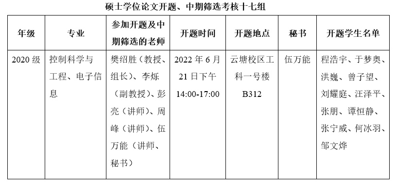 2022年研究生学位论文开题及中期筛选考核安排表(九)