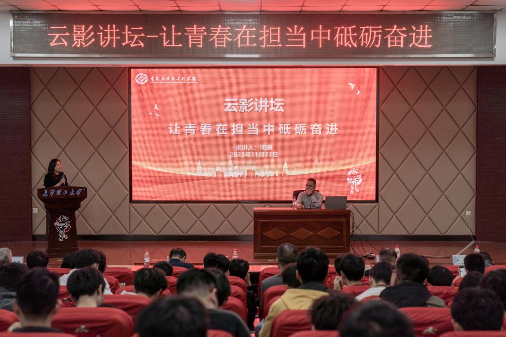 11月22日晚,全国优秀共产党员电气学院2017级优秀毕业生周顺做客云影讲坛,畅谈青年使命担当。校研工部部长闾兰、电气学院原党委书记符慧林、党委书记丁丹、副书记陶双、副院长王文、关工委副主任罗玉雄、周羽生教授,电气学院260余名研究生一同参加。