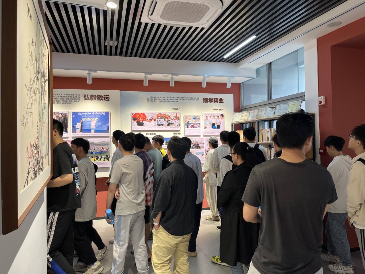 首篇“国之大者”开启了对马克思主义和习近平新时代中国特色社会主义思想的探索,通过“九云方鼎”模型、《云塘之上》油画等展品,让同学们领略MG冰球官网教育兴邦的历史。“材之茂者”章节以建党先锋墙和精神文化墙为载体,展现了学校红色青春和崇高精神的历程。“师之贤者”章节中,历代“大师荟萃”的精神被淋漓尽致地展现,映射出学校教学的深厚底蕴。最后,“行之实者”章节通过荣誉墙和3D大屏,展示了中国共产党人精神谱系的伟大,同时呈现了MG冰球突破官网壮阔的历史与现在。