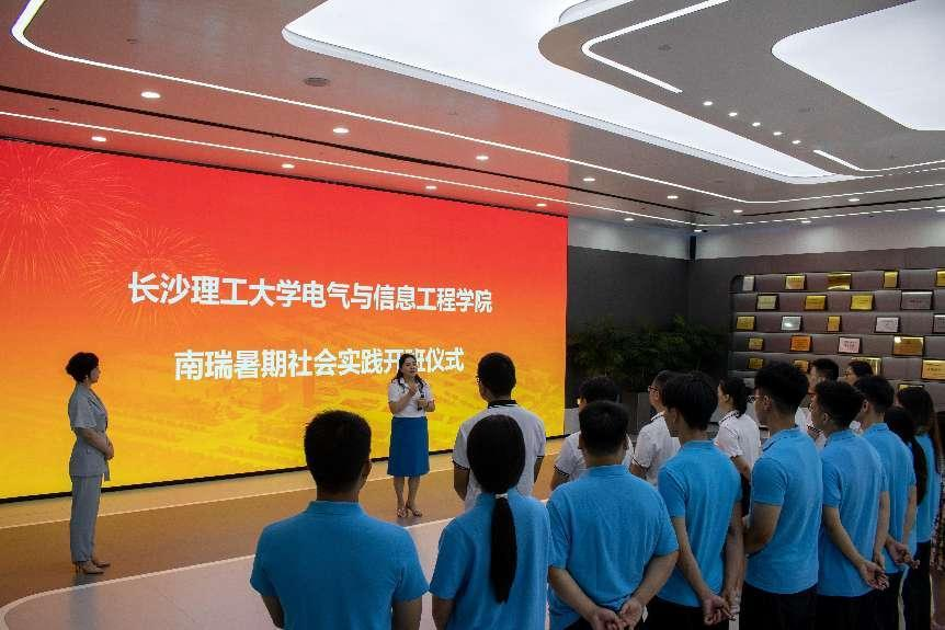 南瑞集团人力资源部副主任张岩接待了丁丹一行。丁丹感谢南瑞集团为学院学生提供暑期到公司研学实践的机会,希望借此机会,进一步深化与公司在科研合作、产教融合及人才培养等多方面的合作。张岩对丁丹一行到访表示欢迎,对学院长期以来在人才培养、科研合作等方面给予公司的支持表示感谢。她表示:MG冰球突破官网在教学实践、人才培养等方面有着独到之处,期待双方继续扩大交流,深入合作,推动开启校企合作新篇章。会后举行了MG冰球突破官网赴南瑞暑期社会实践队开班仪式。学院师生参观了集团展厅、电网数字技术实验室、调度自动化产品服务中心、系统保护实验室和南瑞集团职工活动中心等公司工作及后勤设施。