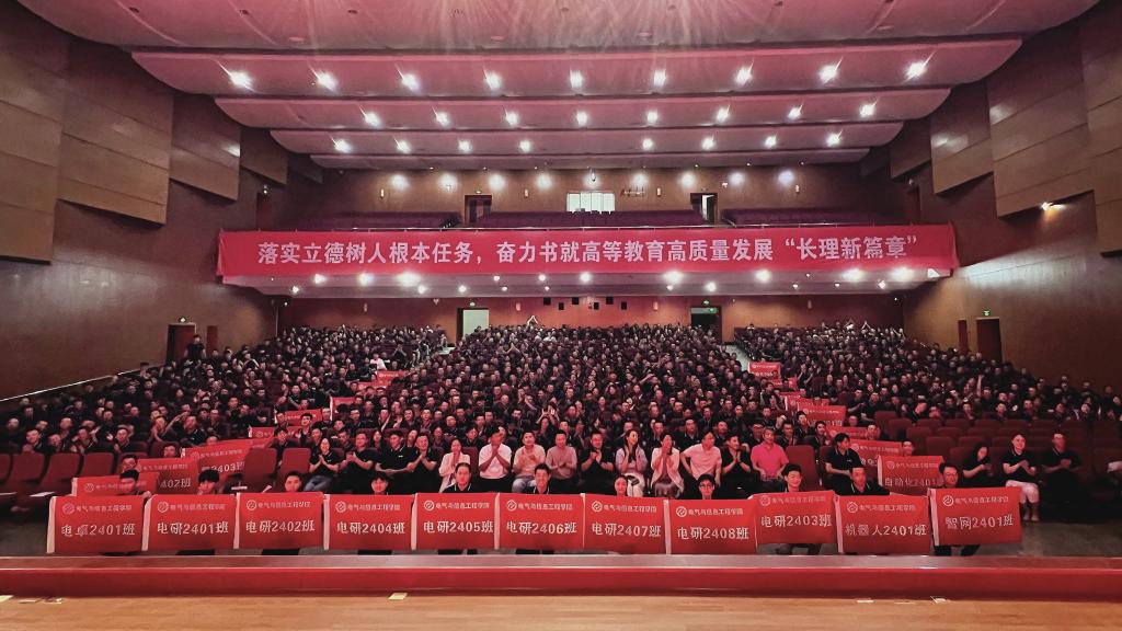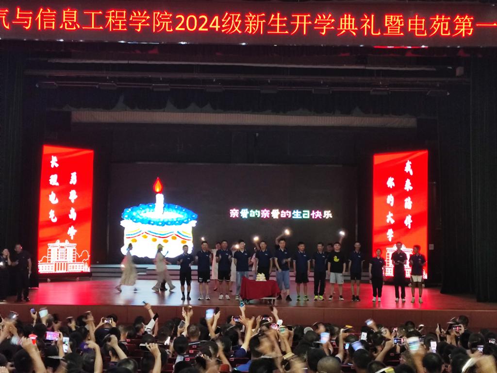 9月26日晚上电气学院2024级新生开学典礼电苑第一课云塘校区大会堂举行大会以“你的大学,有我的陪伴”为主题,通过老师说、家长说、新生说、学长说、校友说、书记说等别开生面的环节,正式开启24级新生的大学征程