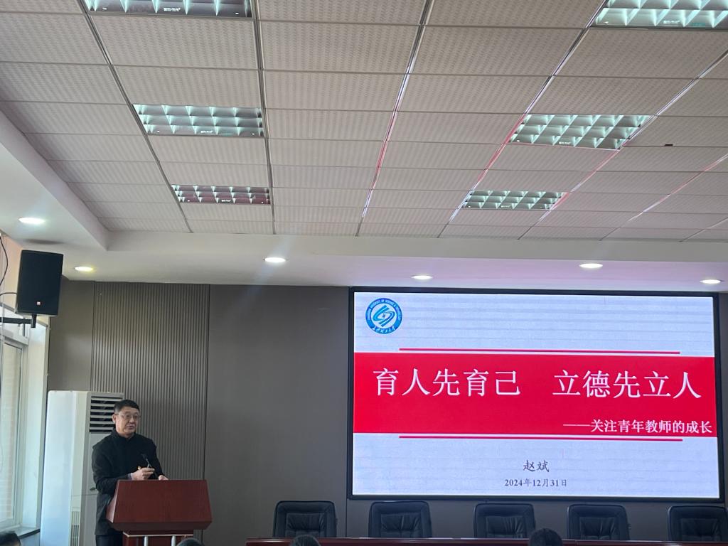 赵斌以“育人先育己,立德先立人”为题,以自身二十二年在教书育人、教学工作、科研工作、学生管理与格局规划五个方面为切入点,围绕当前高校“内卷”困境,帮助青年教师探索发展之路。他强调,青年教师应成为一个有理想讲政治,有能力讲奉献,有担当讲团结的人,保持终身学习,做到知行合一,把论文写在祖国的大地上。符慧林表示,青年教师要内外双修,潜心教学,藏技于身,方能挥洒自如。无论何时,始终要做一个有格局、讲情怀的教师。