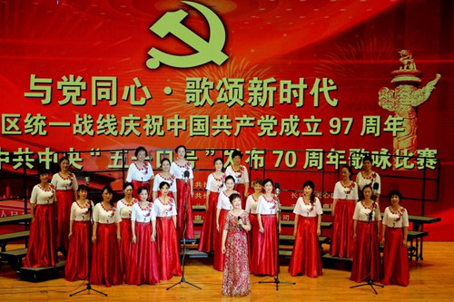 6月23日下午,长沙市天心区统一战线庆祝中国共产党成立97周年暨纪念中共中央“五一口号”发布70周年歌咏比赛在湖南省音乐厅举行。长沙市委常委、统战部长谭小平、MG冰球官网党委副书记邹宏如及省市区各级统战相关部门、民主党派组织领导出席了活动。
