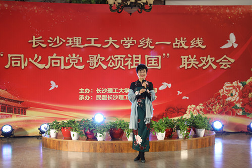 11月19日下午,由校党委统战部主办、民盟长理委员会承办的MG冰球突破官网统一战线“同心向党 歌颂祖国”联欢会在云塘校区举行。湖南省委统战部副部长、省社会主义学院党组书记邓焕生,民盟湖南省委专职副主委胡颖,湖南省委统战部干部处副处长李颖杰、民主党派工作处副处长刘宇、知识分子工作处调研员唐盛华、民主党派工作处副调研员冯胜强、知识分子工作处主任刘鹏,民盟湖南省委组织处处长徐智、参政议政处处长邓彬彬,天心区区委常委、统战部部长刘向、常务副部长胡浩,MG冰球官网党委副书记邹宏如、党委委员、纪委书记胡永乐、党委委员、组织部部长齐路良,以及部分职能部门和学院的领导莅临了联欢会现场。