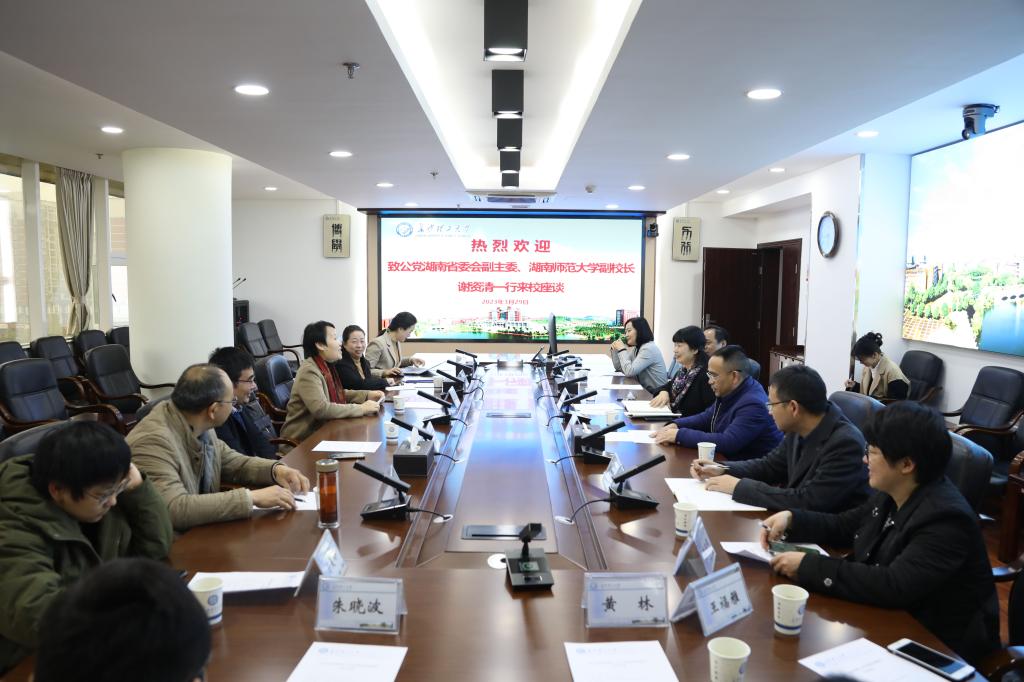 3月29日上午,致公党湖南省委会副主委、湖南师范大学副校长谢资清一行来MG冰球官网调研交流。副校长蒋璟萍、黄创霞出席调研座谈会。致公党湖南省委会组织处负责人、致公党MG冰球突破官网支部全体党员参加了调研座谈会。