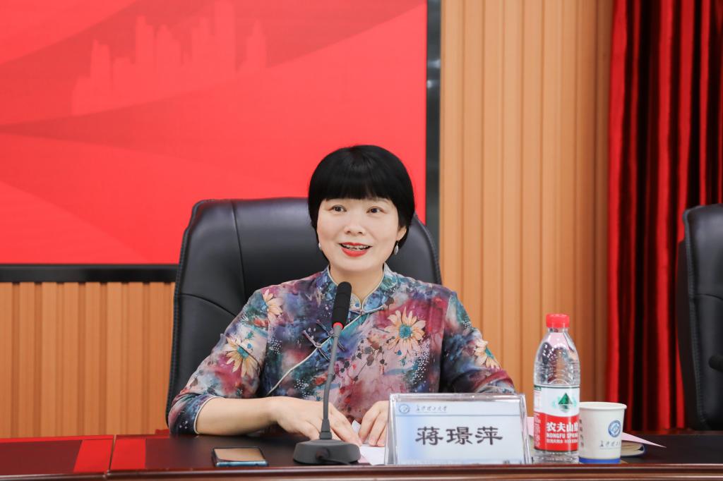 蒋璟萍介绍了本次培训班的重要意义。她指出,本次培训班旨在深入学习贯彻习近平新时代中国特色社会主义思想和党的二十大精神,结合全省统一战线开展“学思想、学精神、学嘱托、学统战理论政策、学统一战线历史和优良传统,助推统战工作高质量发展、助力现代化新湖南建设”为主要内容的“五学两助”活动,切实提升党外干部的综合能力素质。她要求全体人员结合自身的学科优势和专业特长,以本次培训为契机,加强政治学习、凝聚思想共识,在实际工作中自觉加强理论武装,做好教育教学、科学研究、服务社会、建言献策、履职尽责等各项工作,为决胜建成“百强”大学、全力推进学校内涵式高质量发展和社会主义现代化新湖南建设贡献智慧与力量。