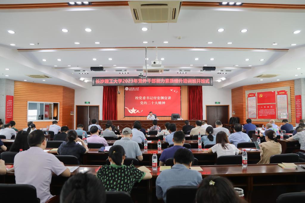 随后,培训班举行了第一课。付宏渊为学校统一战线工作领导小组成员和培训班全体学员宣讲党的二十大精神。他从“坚持从理论体系上学习把握习近平新时代中国特色社会主义思想”“深刻领悟习近平新时代中国特色社会主义思想的世界观方法论”“深学细照笃行习近平总书记关于教育的重要论述,全力推进学校高质量发展”三个方面把学习党的二十大精神、学习习近平新时代中国特色社会主义思想和学校发展实际结合起来,系统阐述了习近平新时代中国特色社会主义思想的理论体系、核心要义和实践要求,解读了党的二十大召开的重大意义和精神实质。