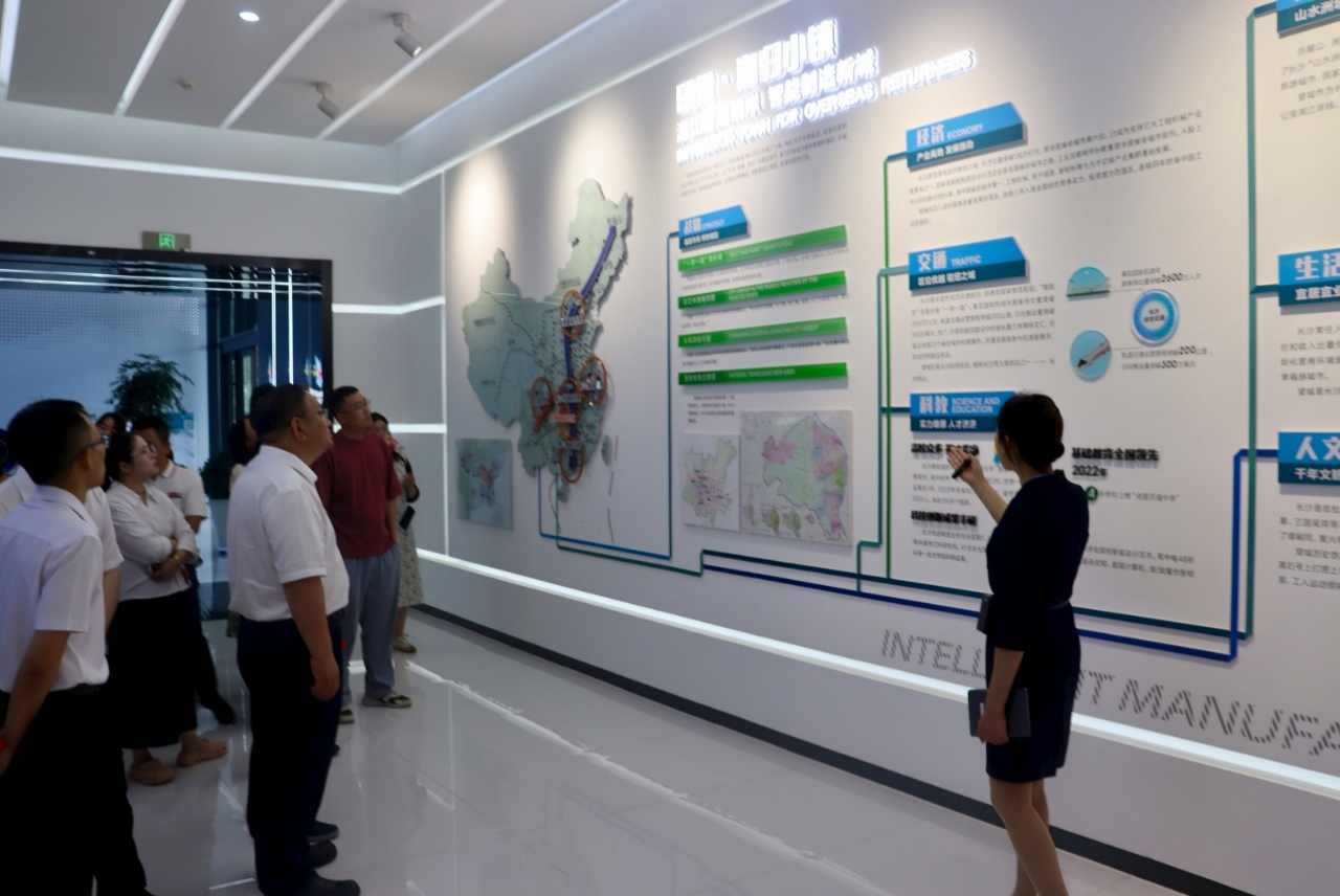 调研团队首先参观了海归小镇数字展厅,通过视频资料、互动展示及现场讲解,全面了解海归小镇的发展历程、空间布局、功能分区、产业集聚与科研创新情况。随后,一行人实地考察了海归小镇一期项目,深入了解其在智能制造领域的布局与建设进展,重点关注了园区在科研投入、平台建设和人才引进等方面取得的成果,感受到海归小镇“汇侨智、聚侨力、促发展”的生动实践。团队还实地考察了大泽湖片区重点招商项目,全面了解望城区城市发展集团在园区开发建设与产业导入方面的统筹布局与高效推进。
