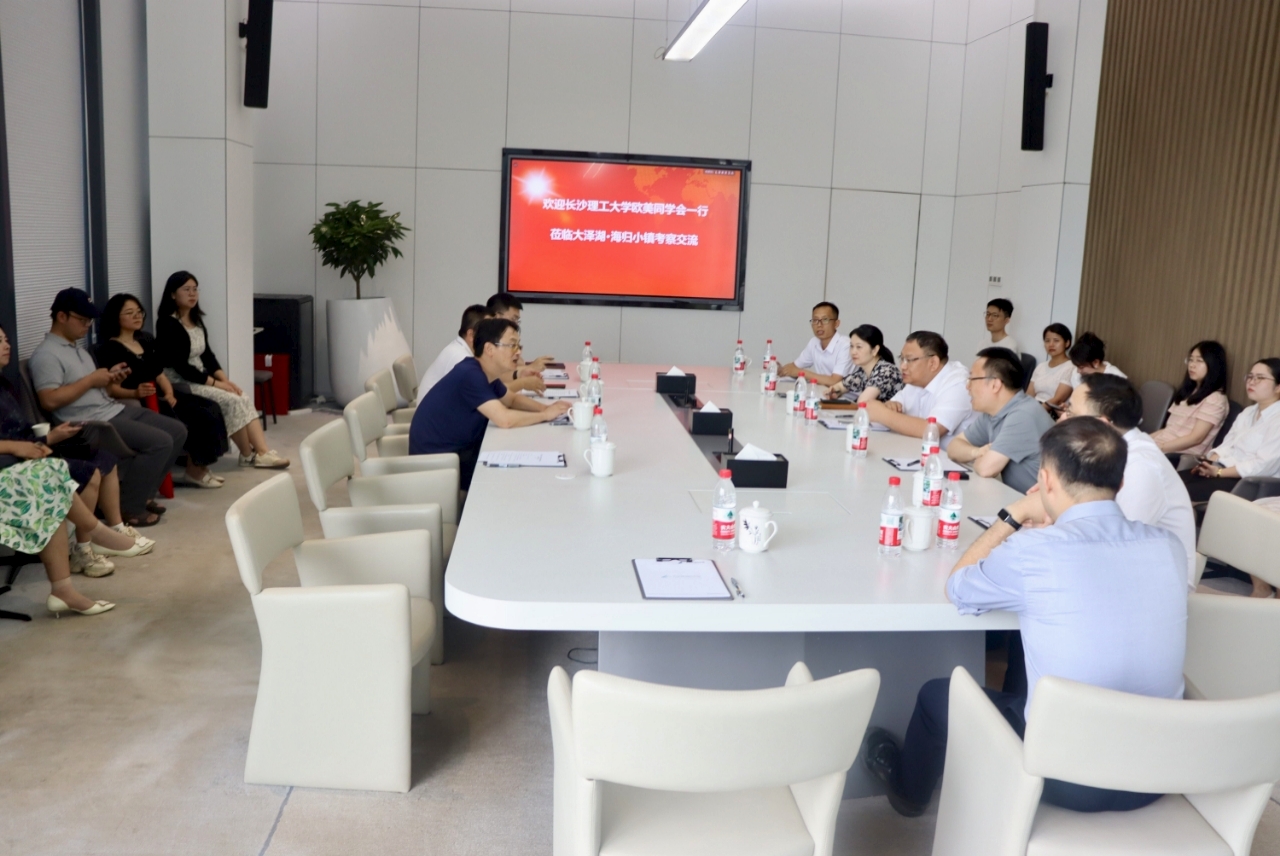 5月18日,长沙理工大学欧美同学会(留学人员联谊会)(以下简称“留联会”)常务副会长宋刘斌等一行前往大泽湖海归小镇走访调研,并与相关单位开展座谈交流。校党委统战部常务副部长唐超文、副部长刘仁,望城区委统战部副部长、侨联主席周登攀出席活动。