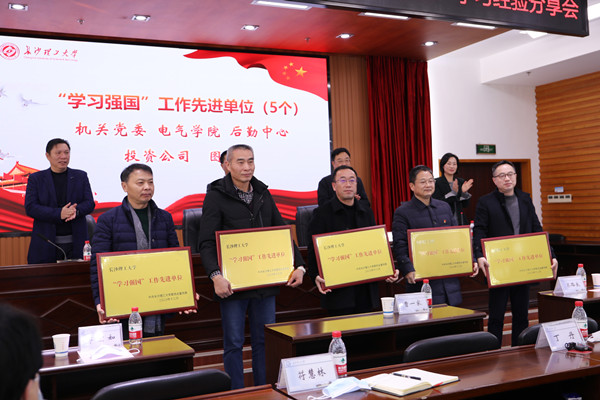 电气学院教师袁松贵、马克思主义学院研究生杨芳、一站式服务中心副主任罗国松、化学院院教师邹振、后勤服务中心校医院医生陈昕、数统学院党委书记张宏伟等6位“学习强国”学习达人分享了学习经验。会议还进行了知识抢答。