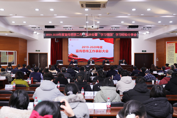 12月30日,MG冰球官网在云塘校区一办九楼会议室举行宣传思想工作表彰大会暨“学习强国”学习经验分享会。校党委副书记、校长曹一家,校党委副书记邹宏如,校党委委员、组织部部长齐路良,学校各二级党组织主要负责人,各机关单位负责人,师生代表参加会议。会议由校党委委员、宣传部部长方琼主持。