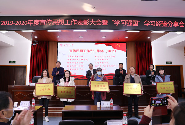 马克思主义学院等10个宣传思想工作先进集体代表,机关党委等5个“学习强国”工作先进单位代表,彭怡峰等15位宣传思想工作先进个人、娄梦瑶等25名优秀学生通讯员代表、袁松贵等10名“学习强国”学习达人、王玉凤等90名“学习强国”学习之星代表上台接受颁奖。