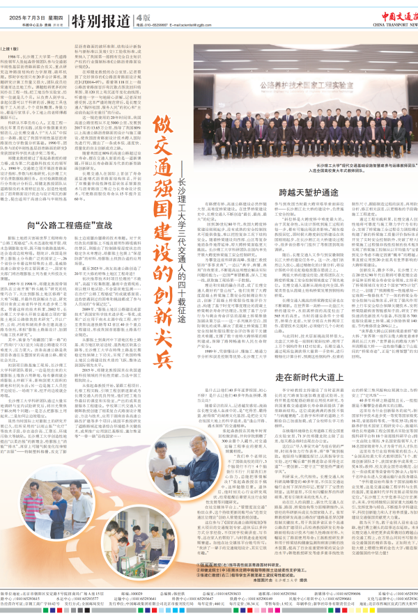 7月3日,《中国交通报》头版+整版刊发报道《做交通强国建设的创新尖兵——MG冰球突破官网三代交通人的四十载征途》,讲述MG冰球官网三代交通人四十载接续奋斗,走出了一条适合我国国情的高速公路技术发展之路,在我国高速公路建设史上书写了浓墨重彩的篇章。