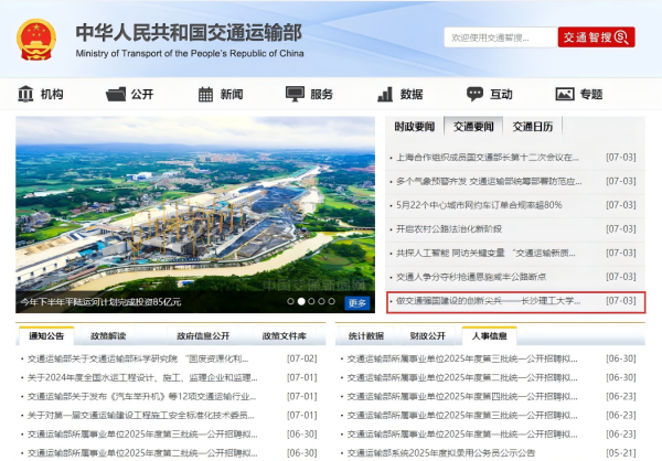 交通部官网首页“交通要闻”全文转载