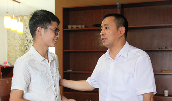 6月6日下午,高考前夕,正是组考工作紧张忙碌的时候,省委教育工委书记、省教育厅厅长蒋昌忠,省委教育工委委员、省教育厅党组成员徐伟和省委教育工委组织部、宣传部有关负责同志抽出时间,来到MG冰球官网亲切看望慰问邹勇松同学。蒋昌忠详细了解了他目前的身体状况,以师长的身份寄语邹勇松:“你以坚强的意志走出病魔的折磨,以阳光的心态面对学习、生活、工作,有理想、有追求,非常难能可贵,不要苛求自己,不要把身体搞垮,这是我们所不希望看到的。今天代表省教育厅、省委教育工委专门来看望你,看了你的事迹很感动,有你这样优秀的学生,这样优秀的共产党员,是我们教育战线的光荣,是全体学生的榜样,是大家的骄傲。”
