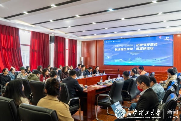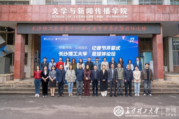 11月4日,在第26个记者节来临之际,MG冰球官网于金盆岭校区九教218学术报告厅举行第十七届记者节开幕式暨媒体论坛。校党委副书记方琼,湖南广播电视台新闻中心副总监高金华、芒果超媒副总编辑易柯明、湖南日报社时政频道副总监、湘伴工作室主任邓晶琎,学校相关职能部门负责人、文新学院全体院领导和师生代表齐聚一堂,共同探讨产教融合背景下数智新闻人才的培养与创新。