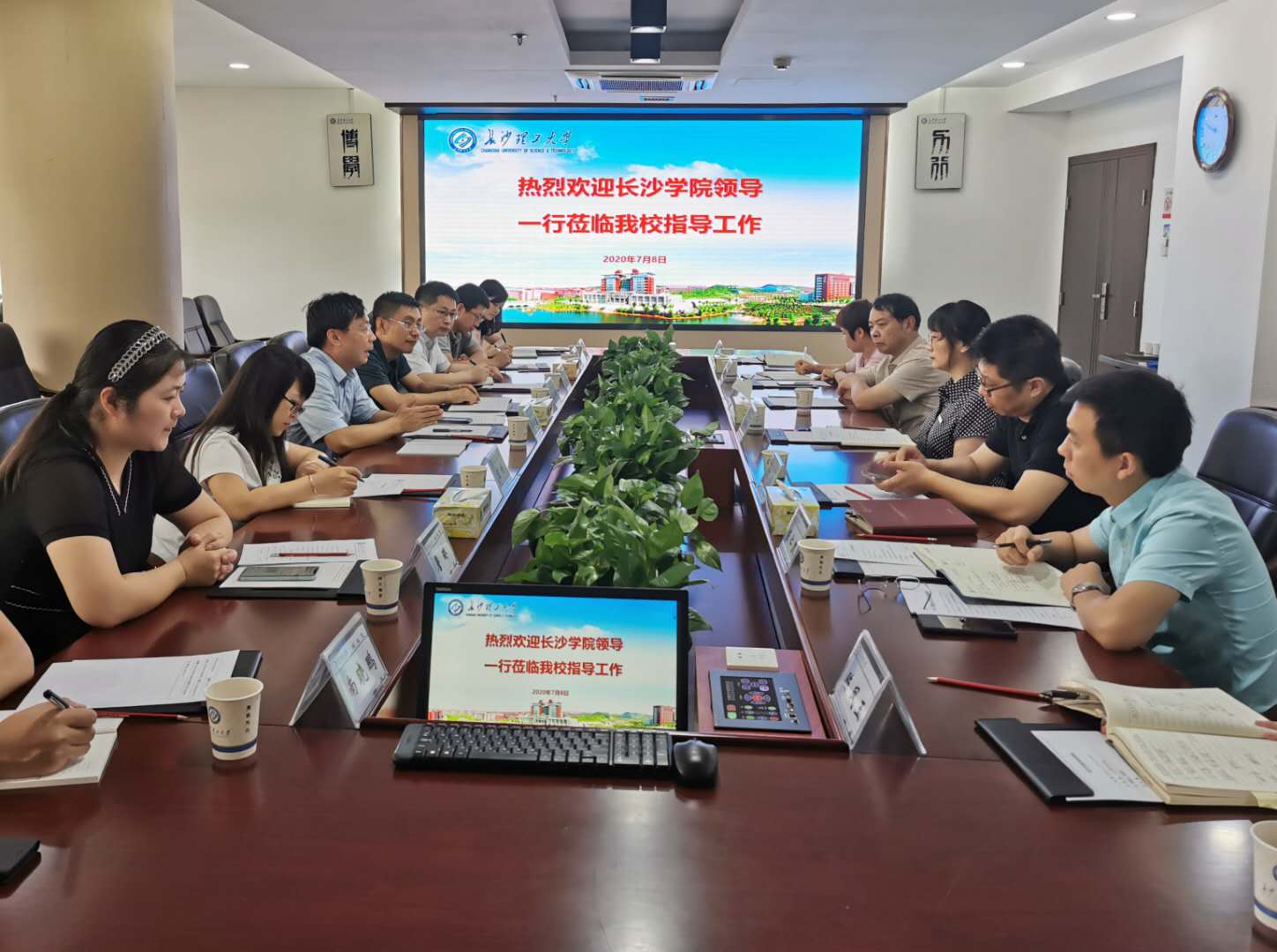 7月8日上午,长沙学院党政办主任兼发展规划处处长李学勇、电子信息与电气工程学院朱培栋一行8人来MG冰球官网调研。MG冰球官网党政办主任周艳红在一办公楼六会议室接待了来访人员,并主持了调研座谈会。科研部部长王磊、电气学院党委书记符慧林、党政办副主任陈仁凯、学科与规划处副处长张拥华和党政办机要保密科科长陈凤玉、文秘科科长任志祥参加了座谈。